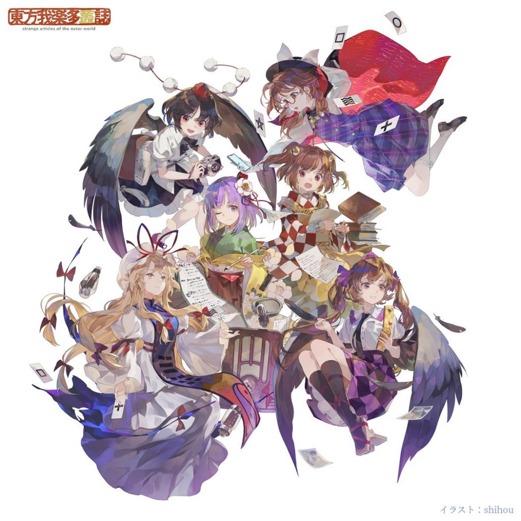 様々な世界に広がっていく東方Projectを、その行方を見つめる存在として射命丸文、姫海棠はたて、本居小鈴、稗田阿求、宇佐見菫子、八雲紫のイラストで表現していただきました。
